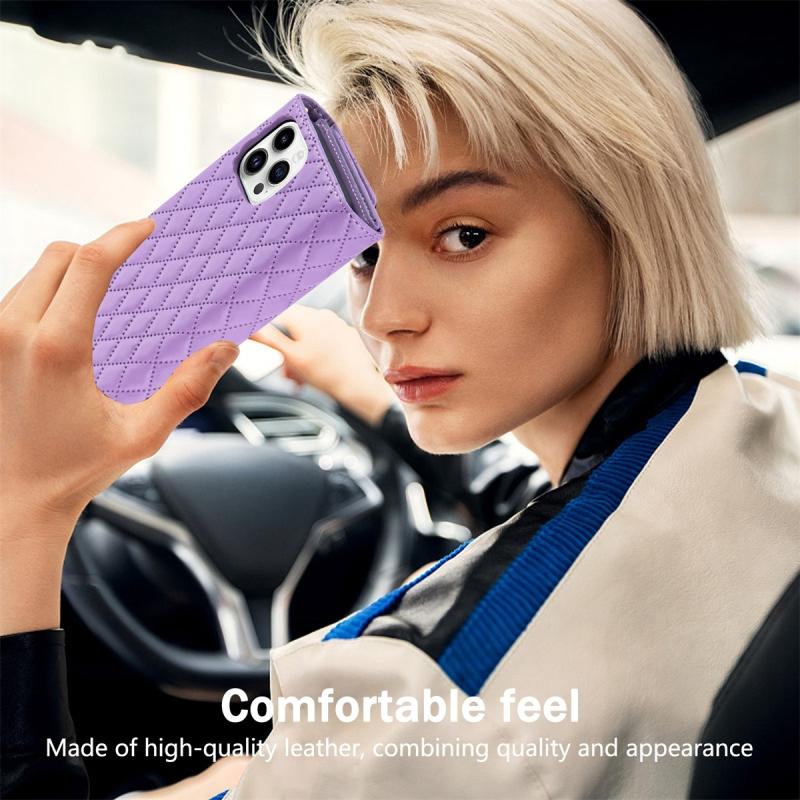 For iPhone 11 Pro Max Zipper Multi-Card Wallet Rhombic Leather Phone Case(Purple)