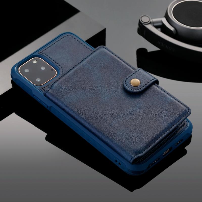 For iPhone 11 Pro Max Zipper Shockproof Protective Case with Card Slots & Bracket & Photo Holder & Wallet Function(Blue)