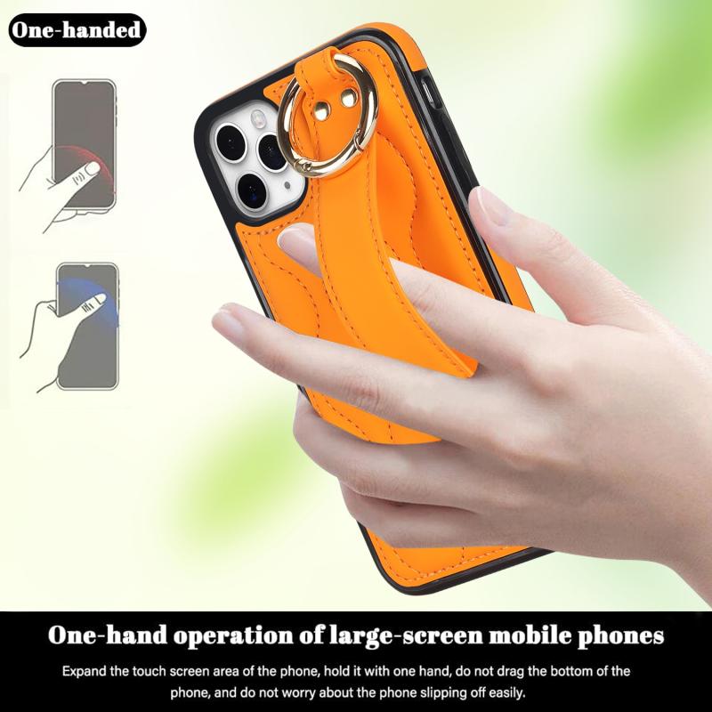For iPhone 11 Pro Non-slip Full Coverage Ring PU Phone Case with Wristband(Orange)