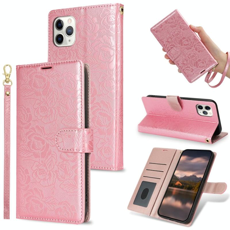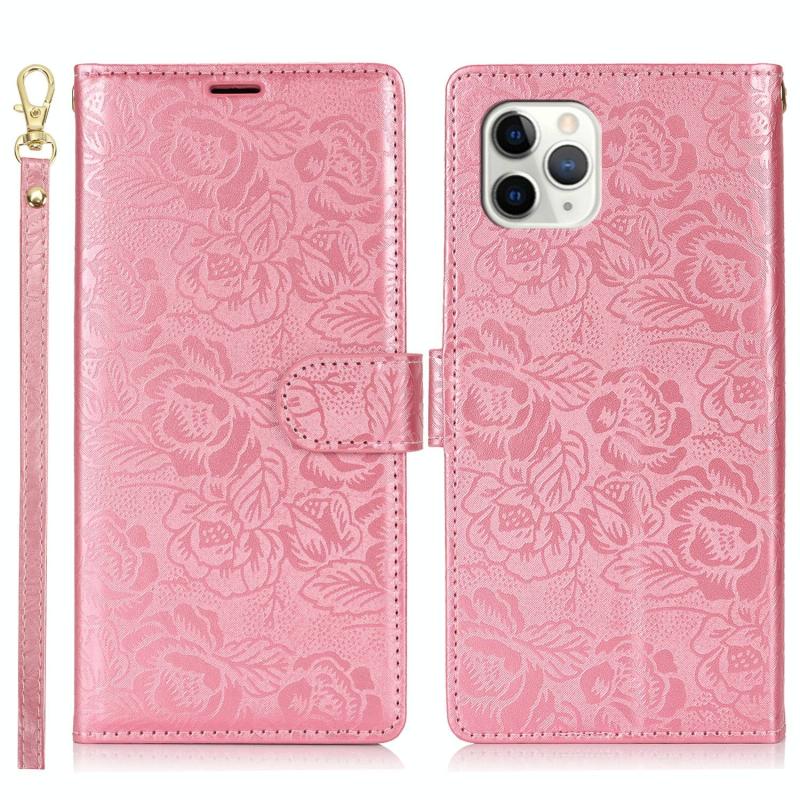 For iPhone 11 Pro Peony Flowers Imprint Leather Phone Case(Pink)