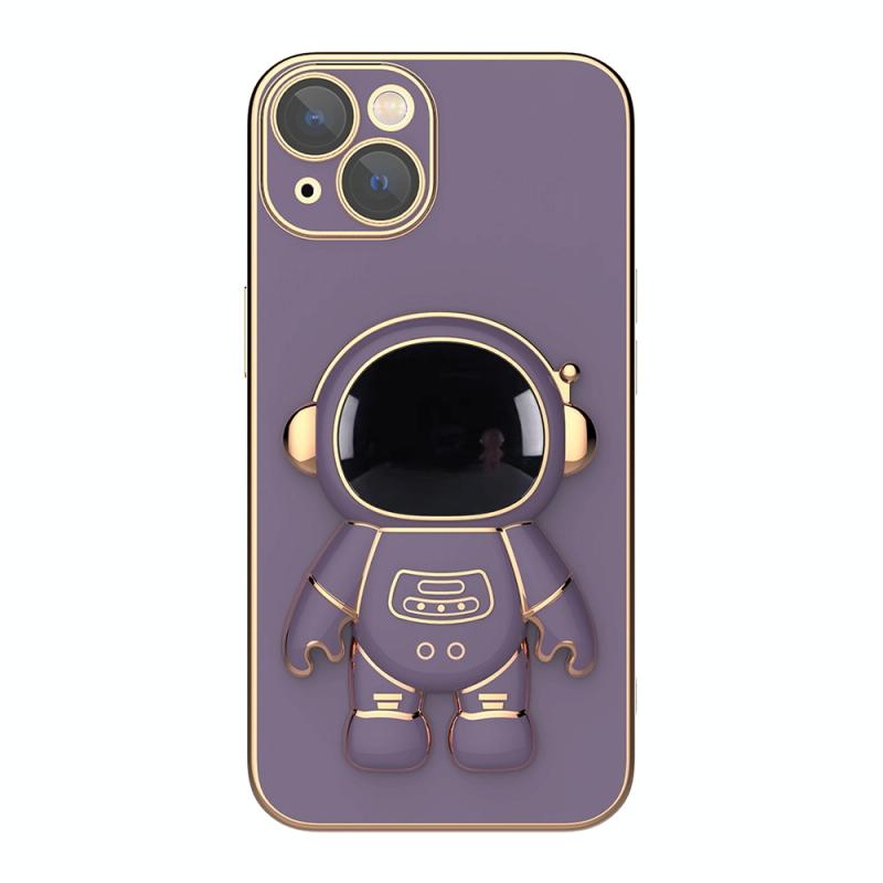 For iPhone 11 Pro Plating Astronaut Holder Phone Case (Lavender Purple)