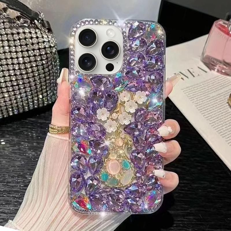For iPhone 11 Pro Plum Blossom Handmade Diamond Inlay PC Phone Case(Purple)
