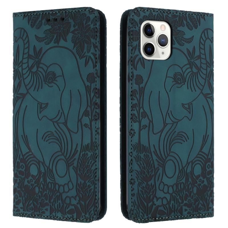 For iPhone 11 Pro Retro Elephant Embossed Leather Phone Case(Green)