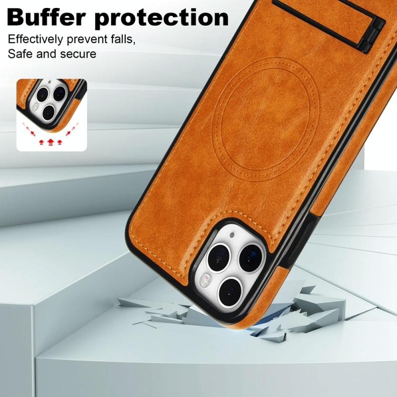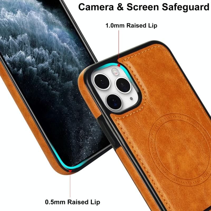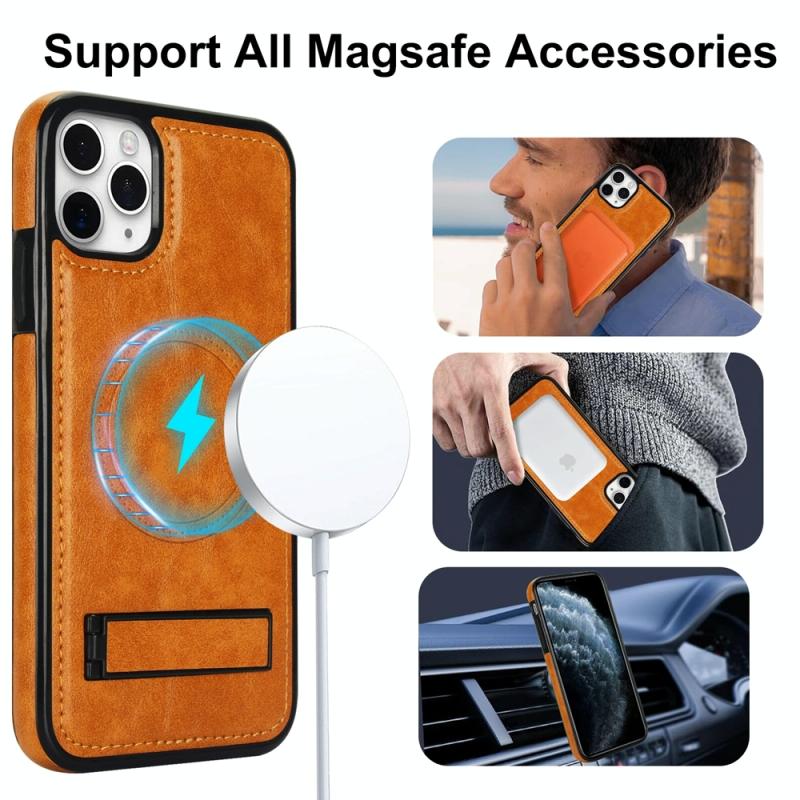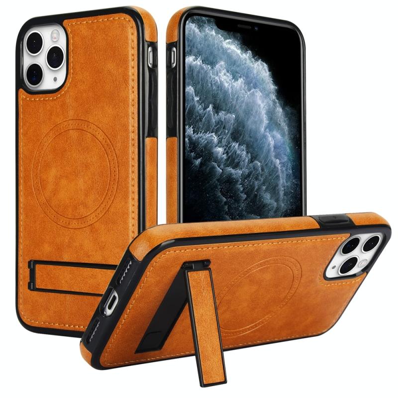 For iPhone 11 Pro Retro Leather Invisible Stand MagSafe Phone Case(Yellow)