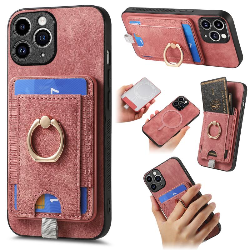 For iPhone 11 Pro Retro Splitable Magnetic Card Bag Leather Phone Case(Pink)