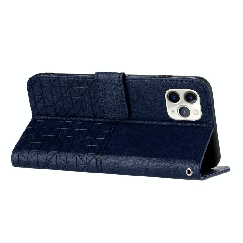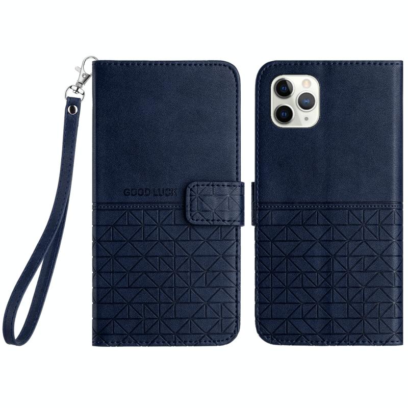 For iPhone 11 Pro Rhombic Texture Leather Phone Case with Lanyard(Blue)
