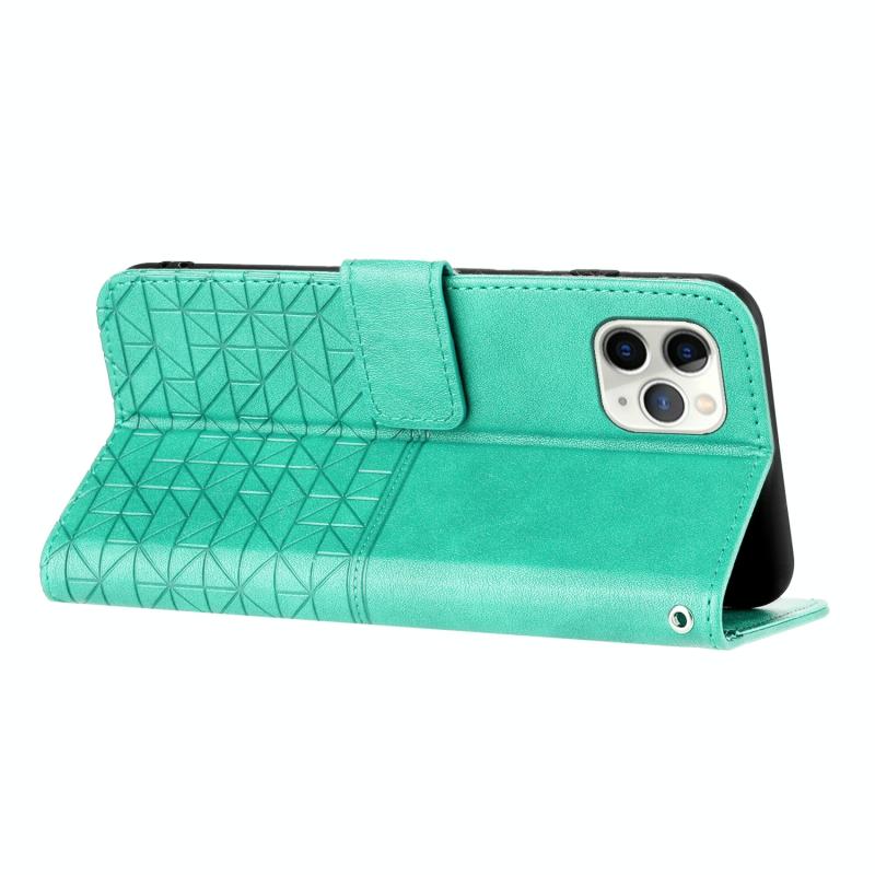For iPhone 11 Pro Rhombic Texture Leather Phone Case with Lanyard(Green)