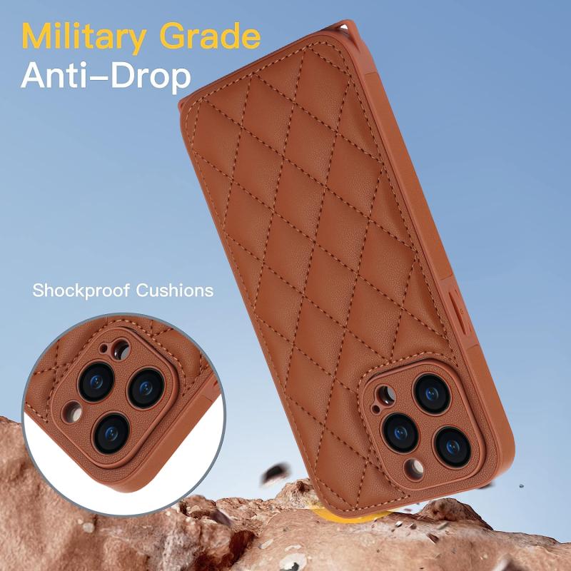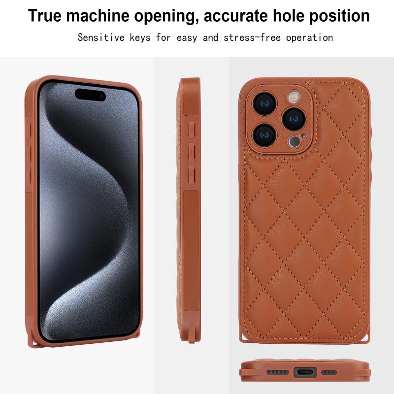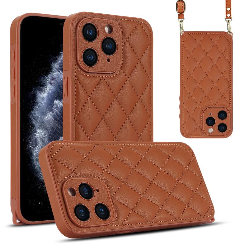 For iPhone 11 Pro Rhombic Texture Phone Case with Dual Lanyard(Brown)
