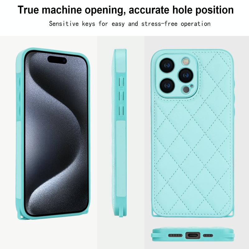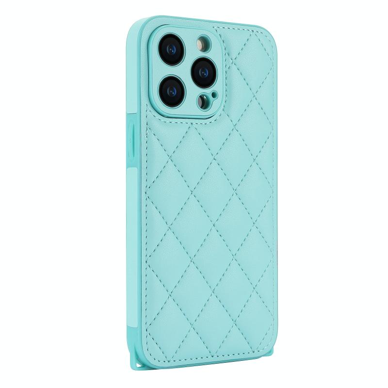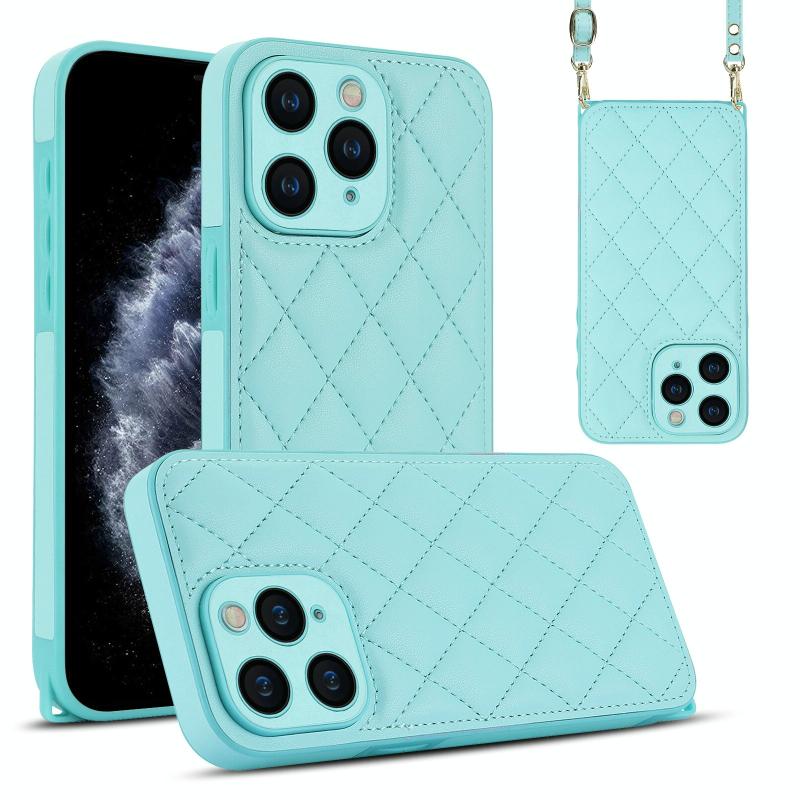 For iPhone 11 Pro Rhombic Texture Phone Case with Dual Lanyard(Green)
