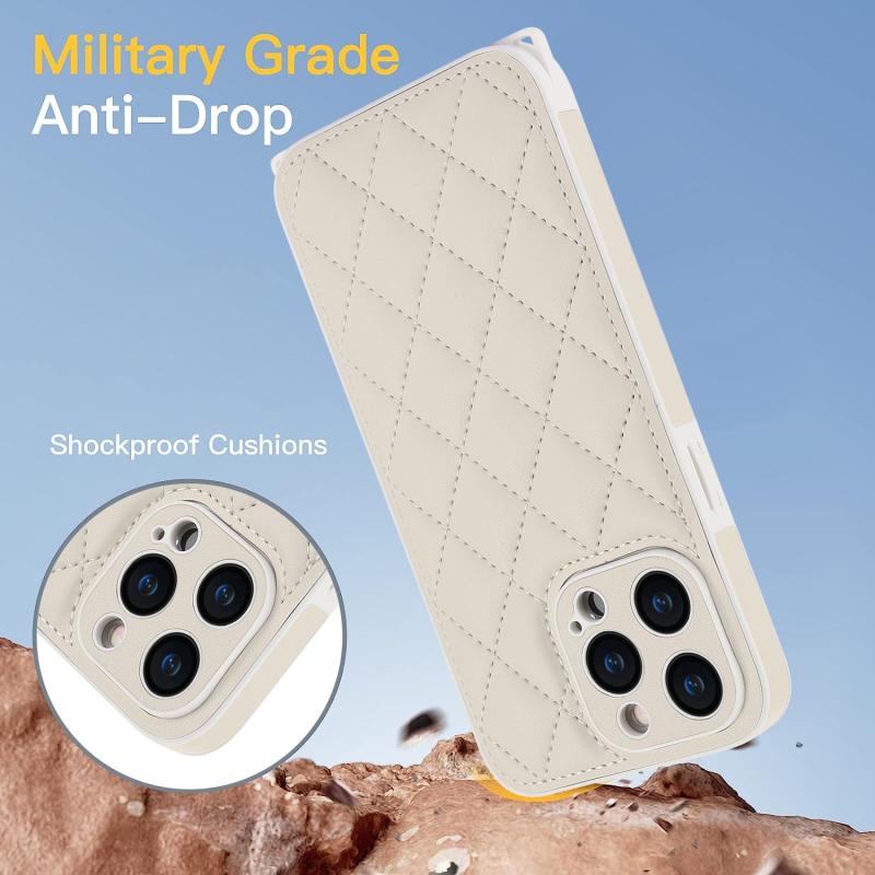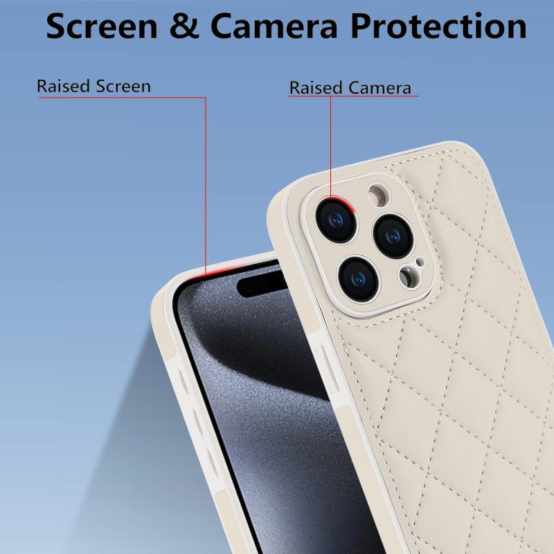 For iPhone 11 Pro Rhombic Texture Phone Case with Dual Lanyard(White)