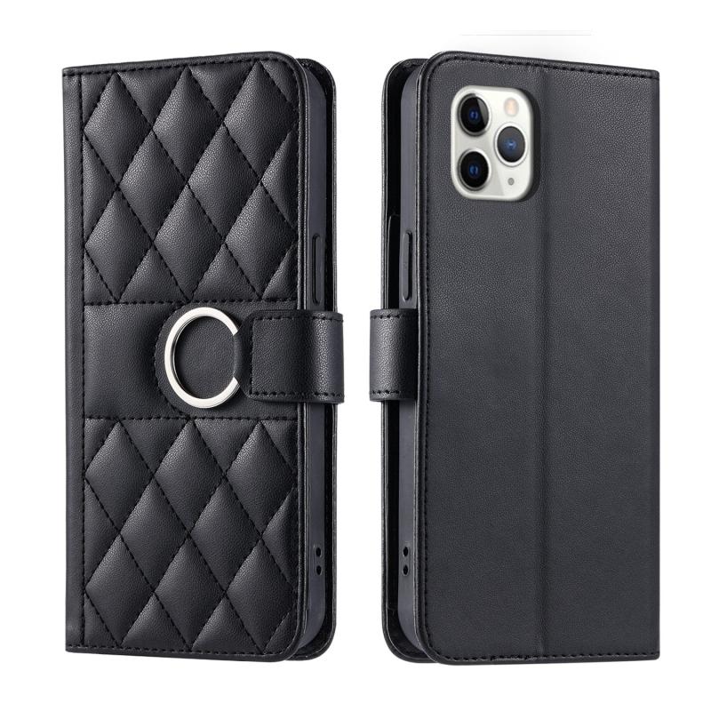For iPhone 11 Pro Ring Buckle Rhombic Leather Phone Case(Black)