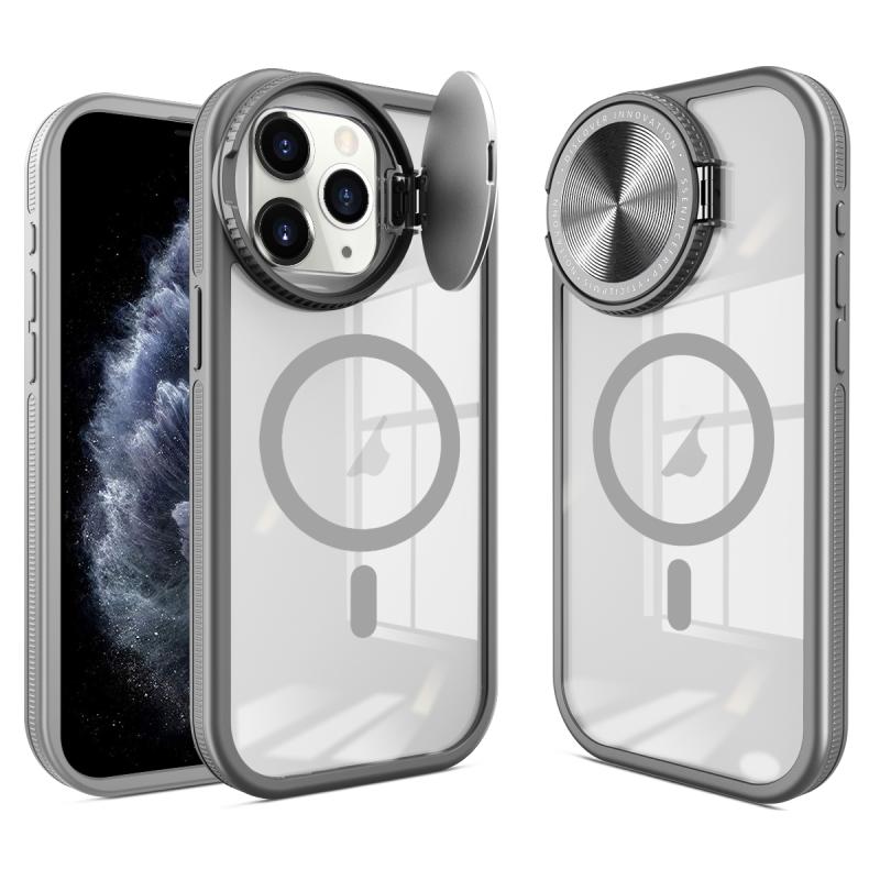 For iPhone 11 Pro Round Camshield MagSafe TPU Hybrid PC Phone Case(Grey)
