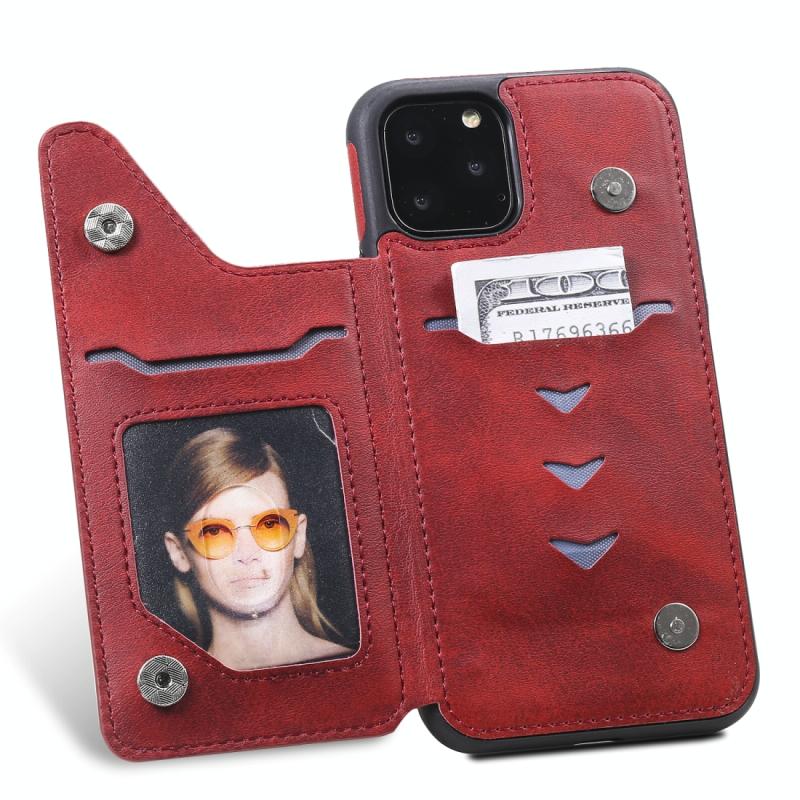 For iPhone 11 Pro Shockproof Calf Texture Protective Case with Holder & Card Slots & Frame(Red)