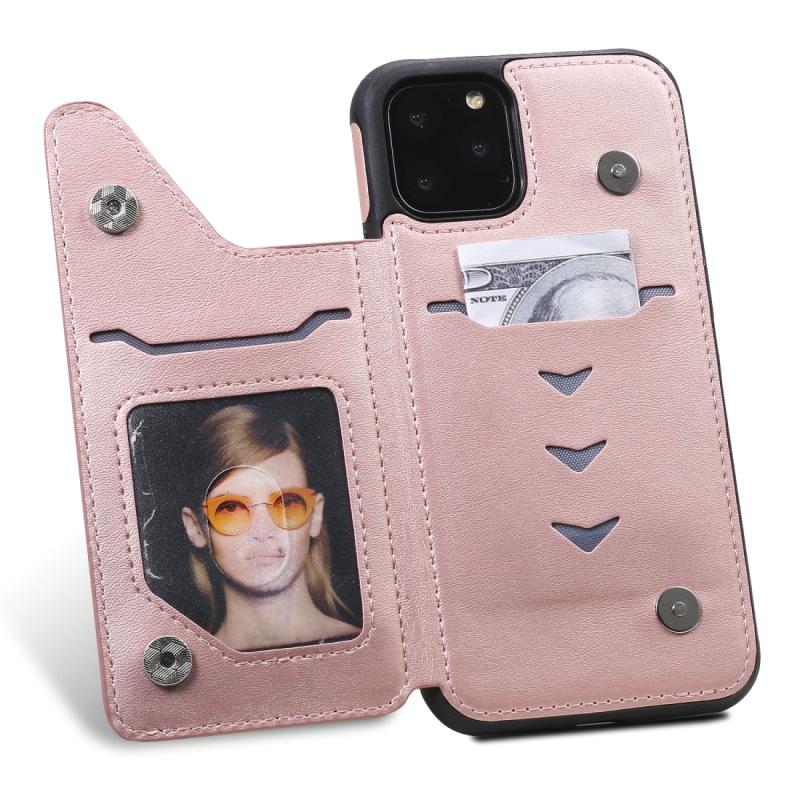For iPhone 11 Pro Shockproof Calf Texture Protective Case with Holder & Card Slots & Frame(Rose Gold)