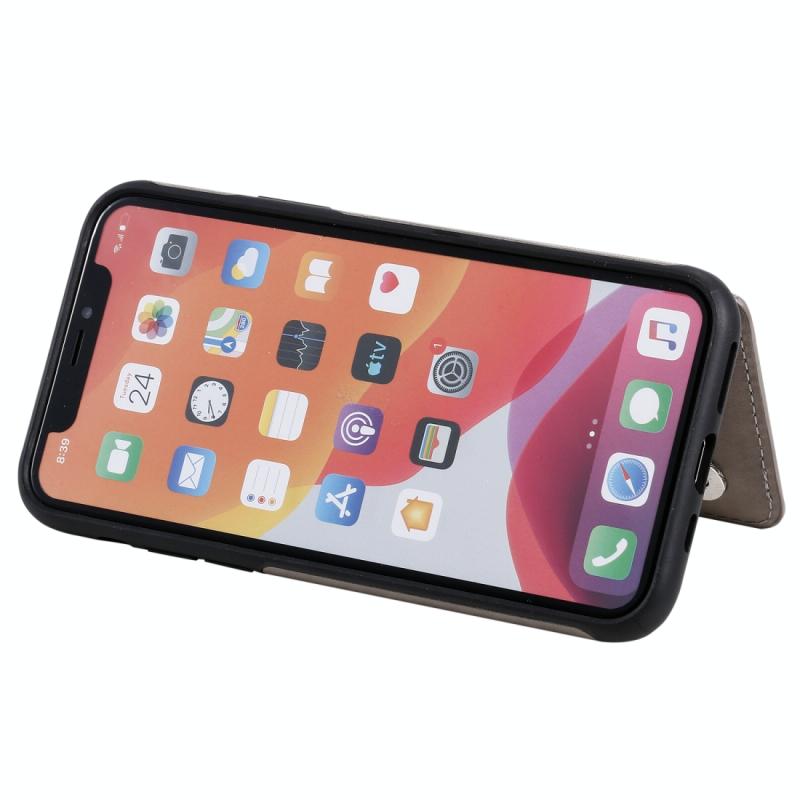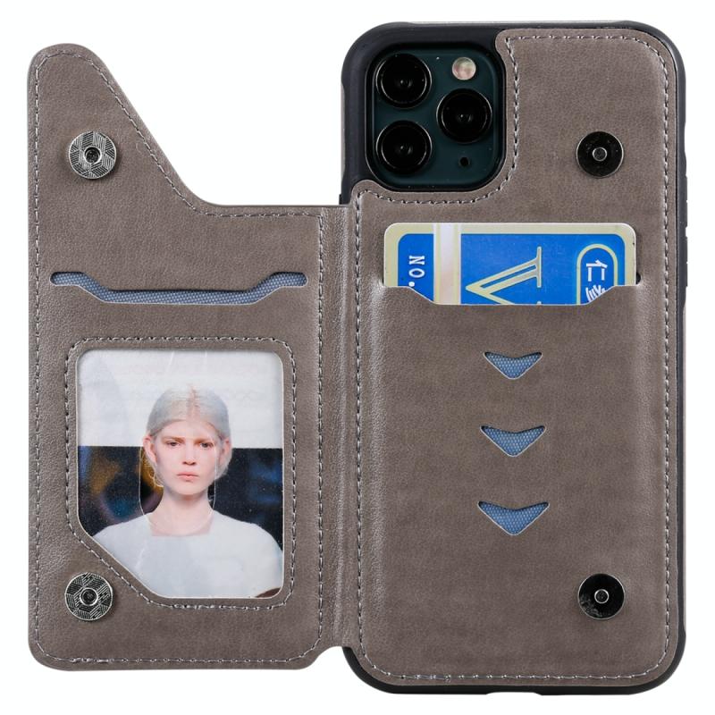 For iPhone 11 Pro Six Cats Embossing Pattern Protective Case with Holder & Card Slots & Photo Frame(Grey)