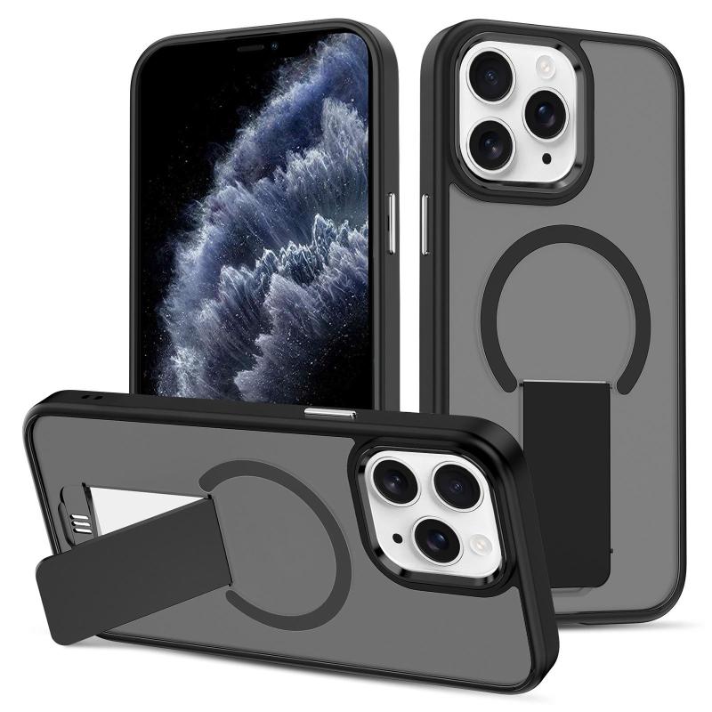For iPhone 11 Pro Skin Feel Invisible Kickstand MagSafe Phone Case(Black)