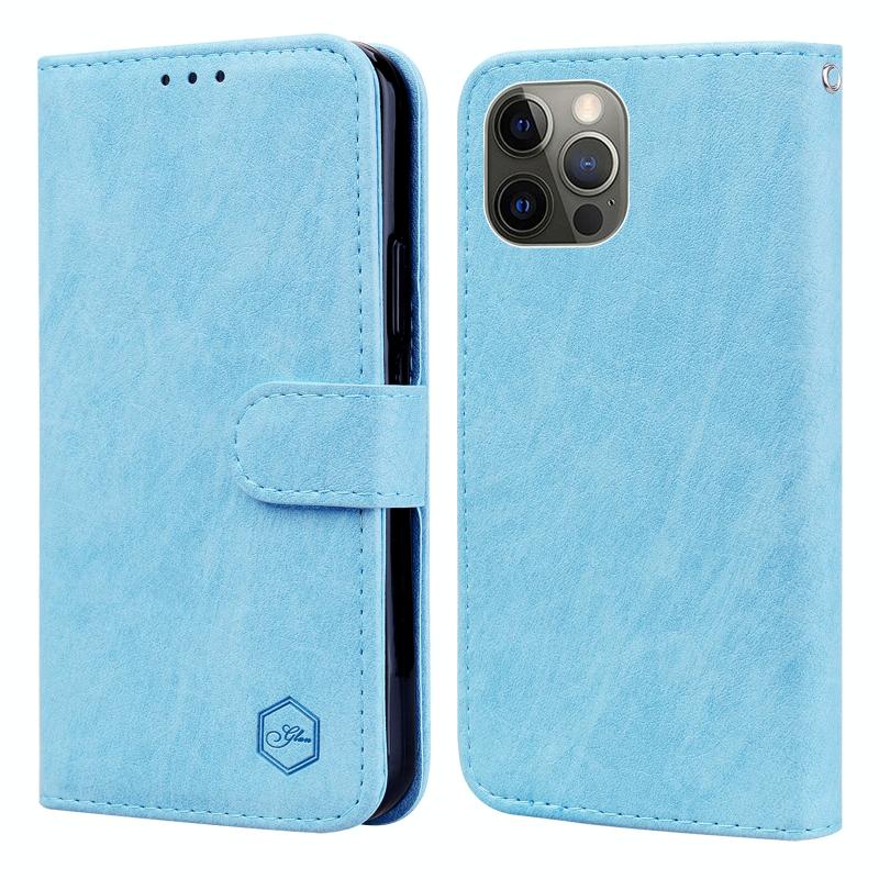 For iPhone 11 Pro Skin Feeling Oil Leather Texture PU + TPU Phone Case(Light Blue)