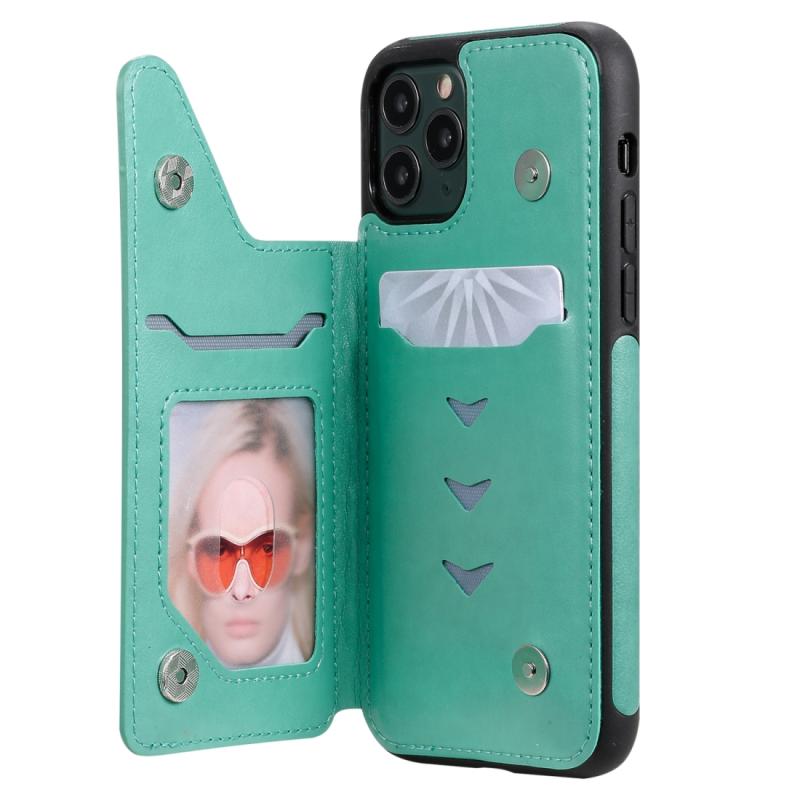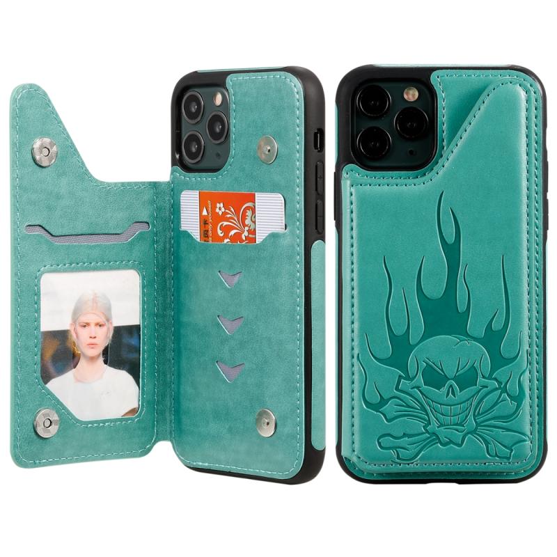 For iPhone 11 Pro Skull Head Embossing Pattern Shockproof Protective Case with Holder & Card Slots & Wallet(Green)