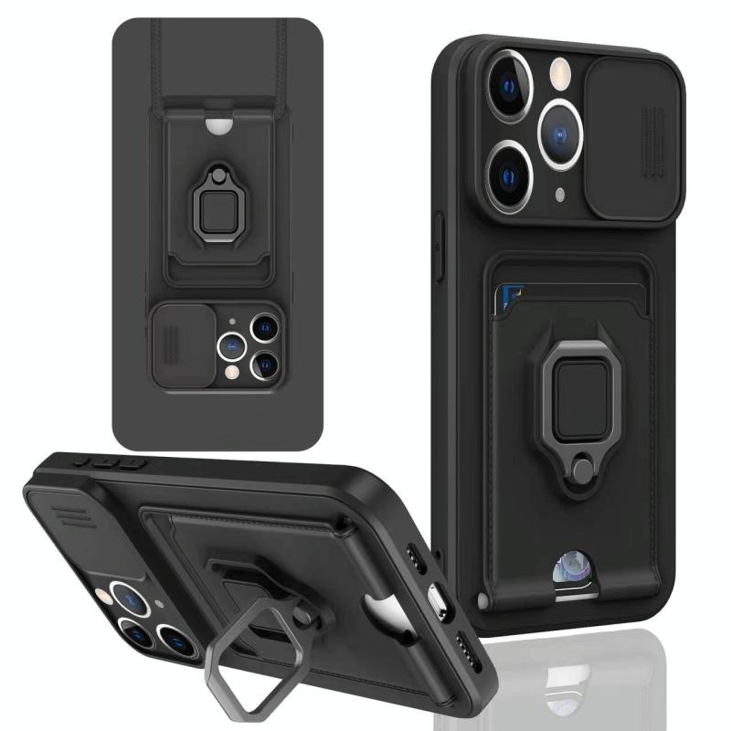 For iPhone 11 Pro Sliding Camshield Magnetic Card Holder Silicone Phone Case(Black)