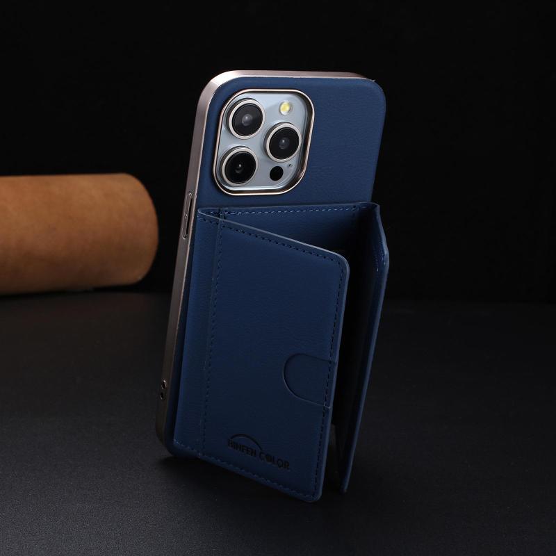 For iPhone 11 Pro Solid Color Horizontal Magnetic Card Bag RFID MagSafe Phone Case(Dark Blue)