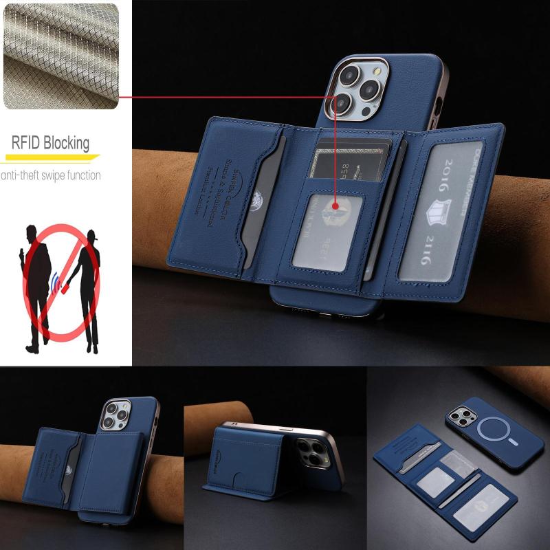 2. Magnetic Tri-Fold Wallet Design: Features a horizontal fold with a strong magnetic closure for easy access and secure storage.