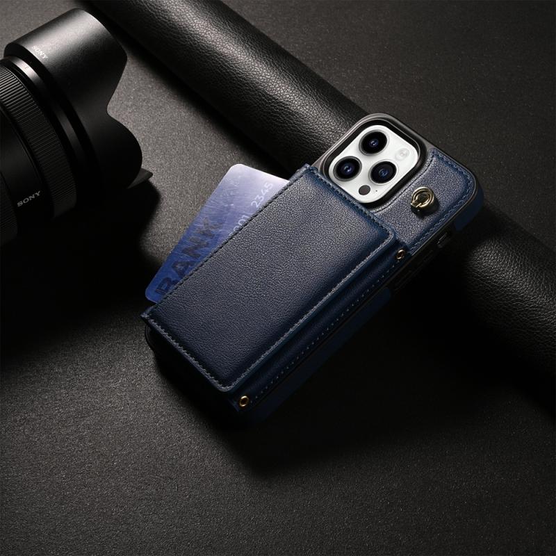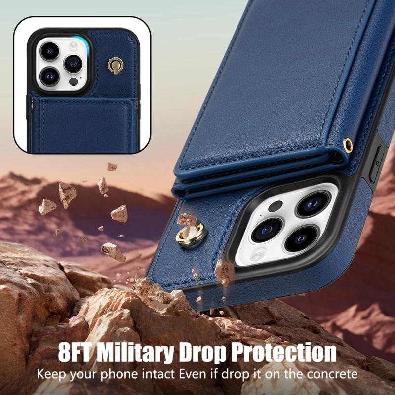 For iPhone 11 Pro Three Fold Card Bag Phone Case with Long Lanyard(Blue)