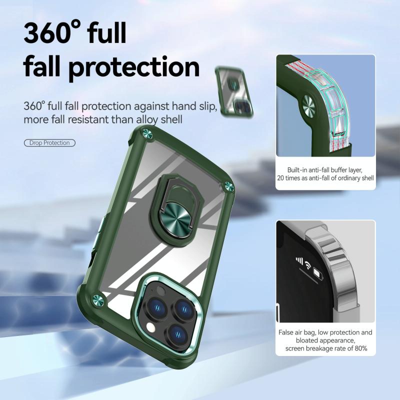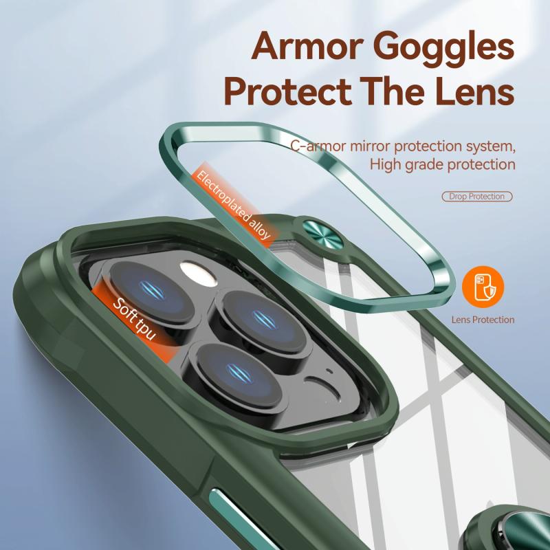 For iPhone 11 Pro TPU + PC Lens Protection Phone Case with Ring Holder(Green)