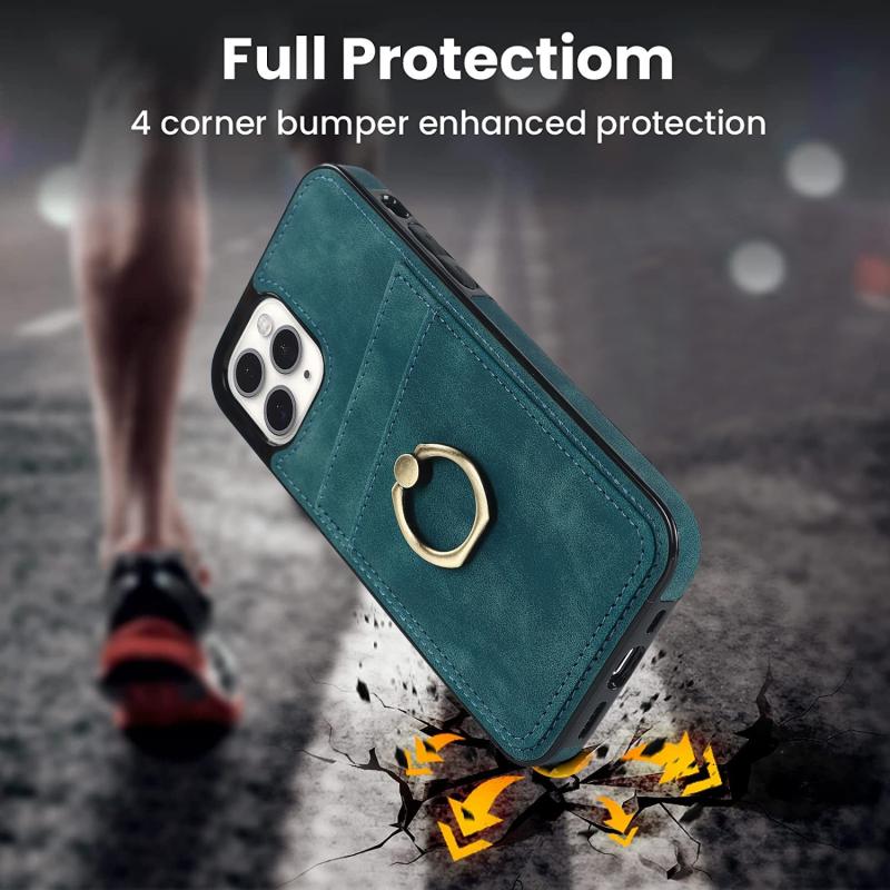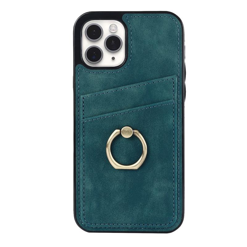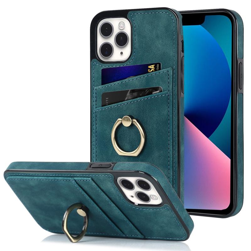 For iPhone 11 Pro Vintage Patch Leather Phone Case with Ring Holder (Blue)