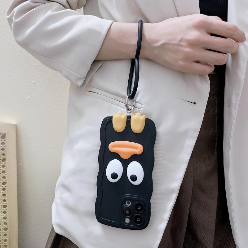 For iPhone 11 Pro Wave Edge Big Duck Silicone Phone Case with Wristband(White)