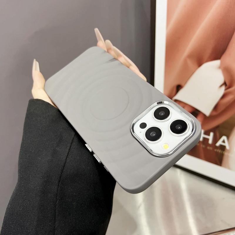 For iPhone 11 Pro Wave MagSafe Silver Lens Frame TPU Phone Case(Grey)