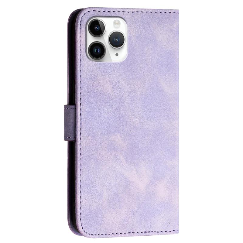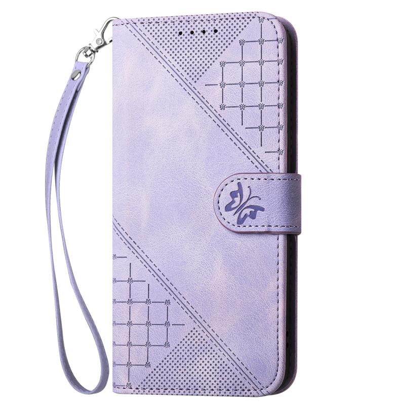 For iPhone 11 Pro YX0080 Grid Butterfly Embossed Pattern Flip Leather Phone Case with Lanyard(Light Purple)