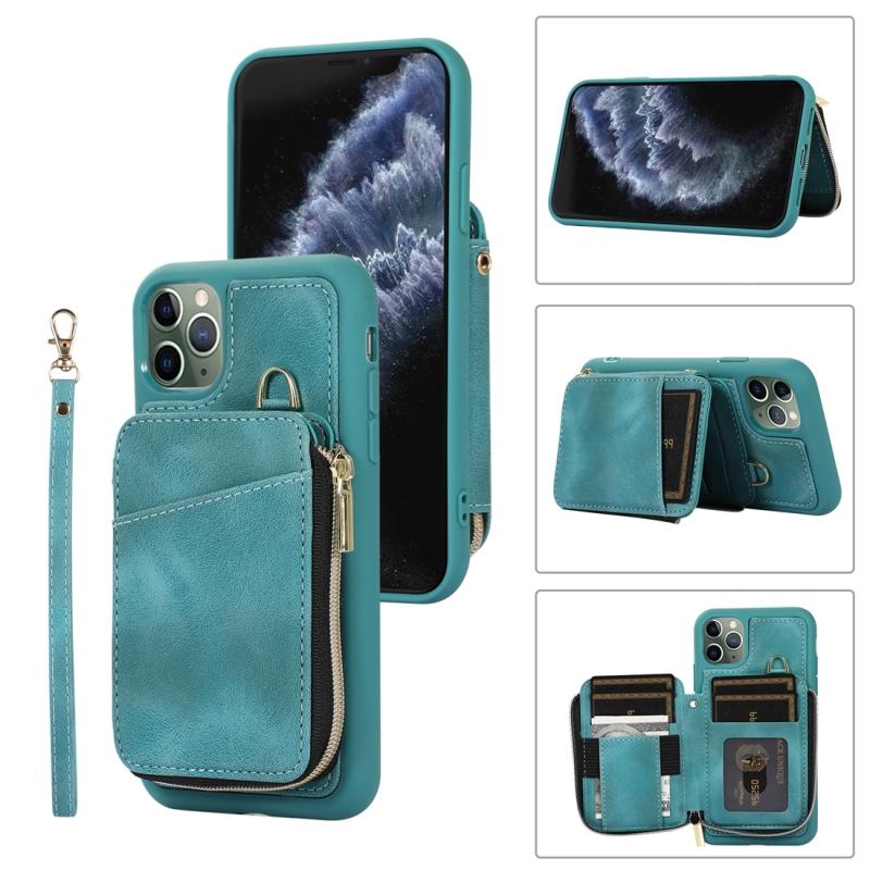 For iPhone 11 Pro Zipper Card Bag Back Cover Phone Case(Turquoise)
