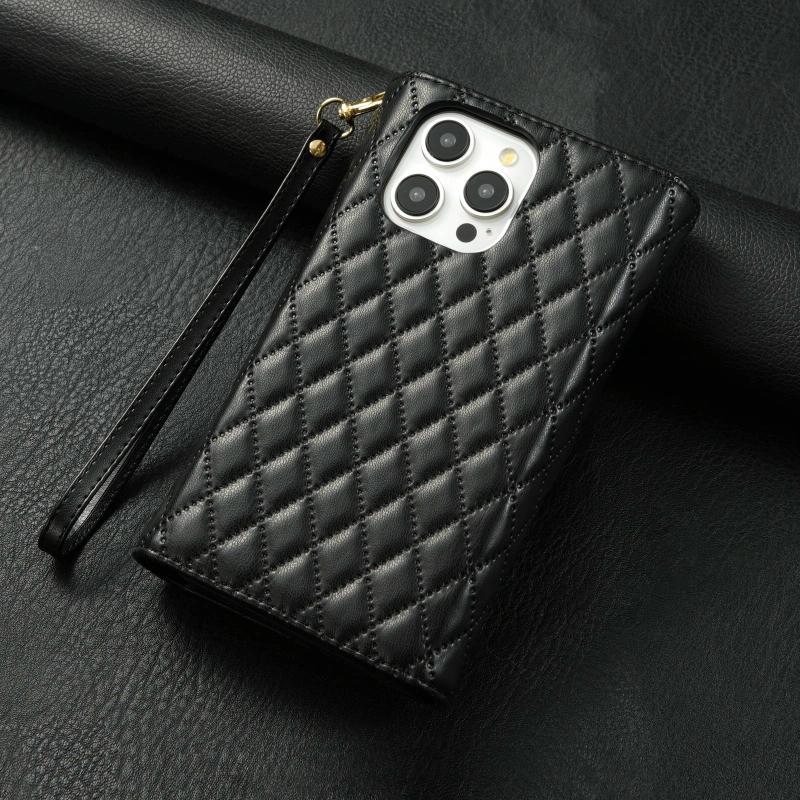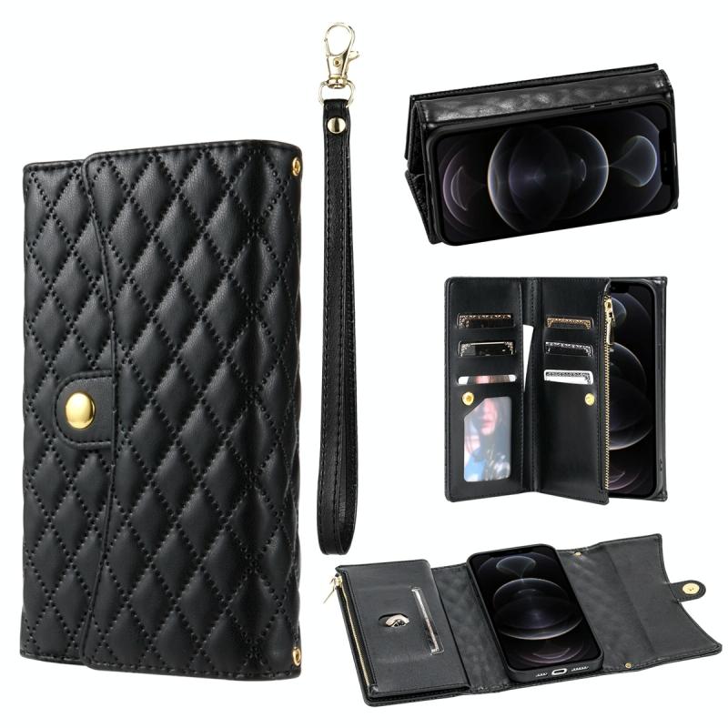 For iPhone 11 Pro Zipper Multi-Card Wallet Rhombic Leather Phone Case(Black)