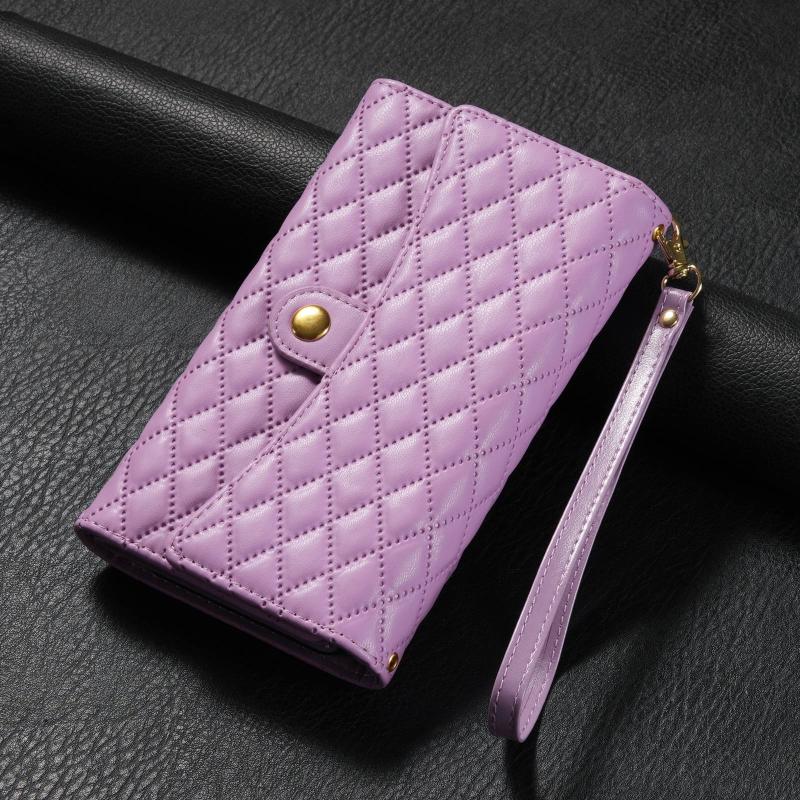 For iPhone 11 Pro Zipper Multi-Card Wallet Rhombic Leather Phone Case(Purple)