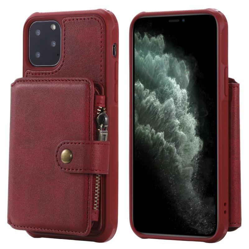 For iPhone 11 Pro Zipper Shockproof Protective Case with Card Slots & Bracket & Photo Holder & Wallet Function(Red)