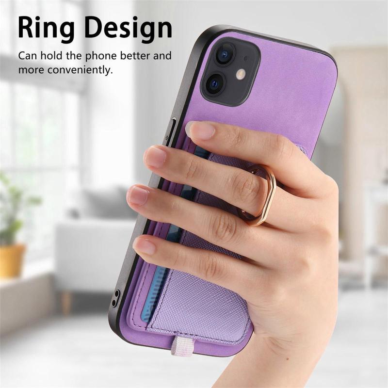 For iPhone 11 Retro Cross Leather Ring Side Insert Card Bag MagSafe Phone Case(Purple)