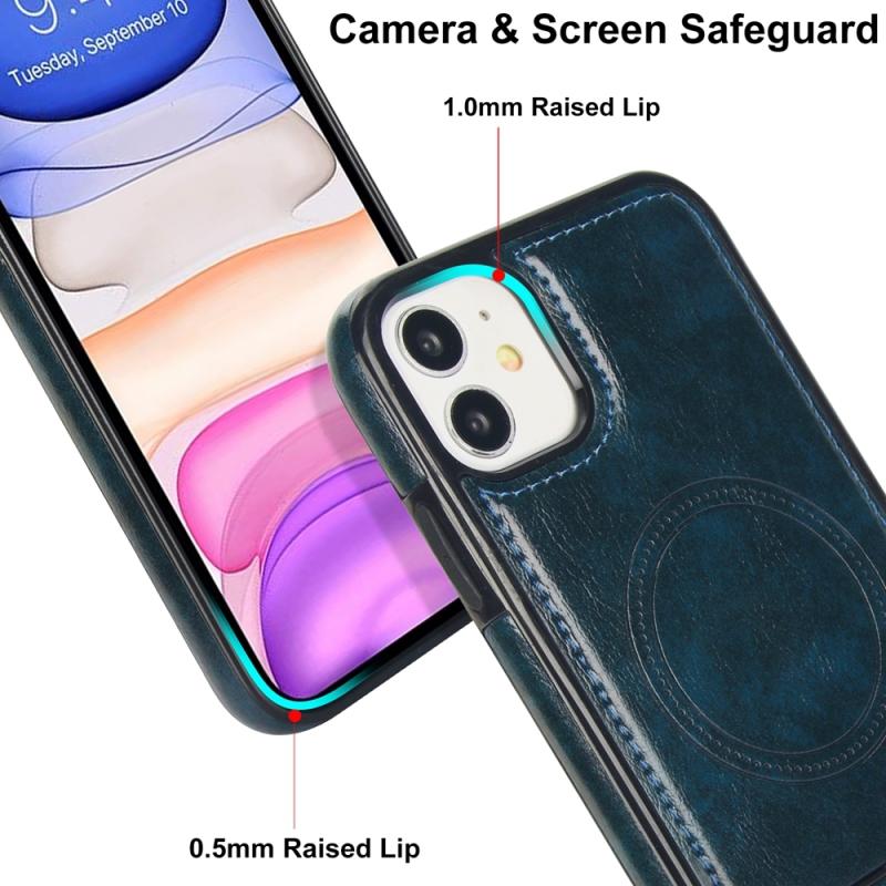 For iPhone 11 Retro Leather Invisible Stand MagSafe Phone Case(Blue)