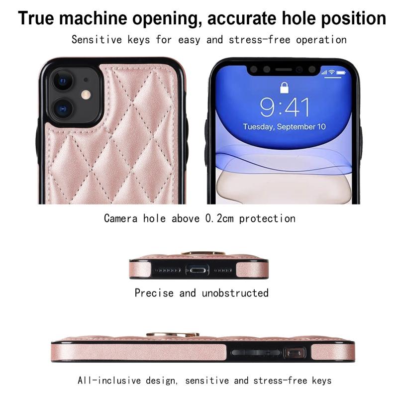 For iPhone 11 Rhombic PU Leather Phone Case with Ring Holder(Rose Gold)