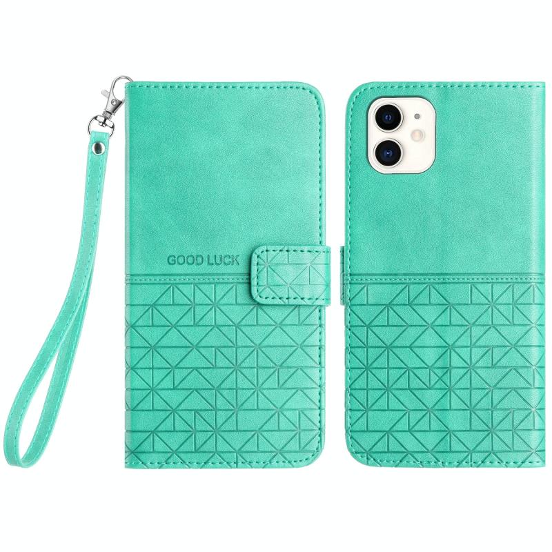 For iPhone 11 Rhombic Texture Leather Phone Case with Lanyard(Green)