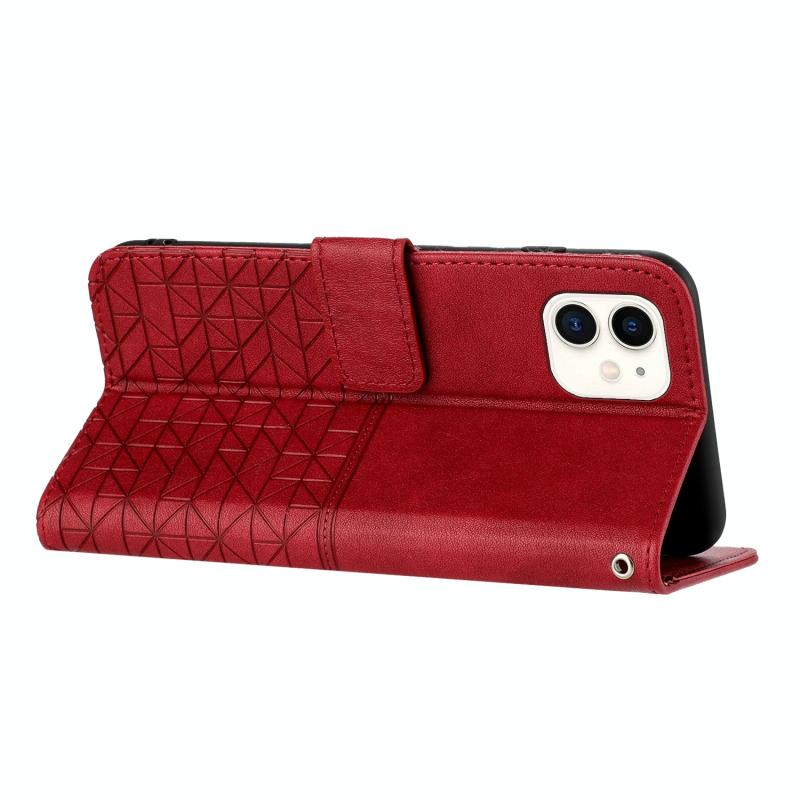 For iPhone 11 Rhombic Texture Leather Phone Case with Lanyard(Red)