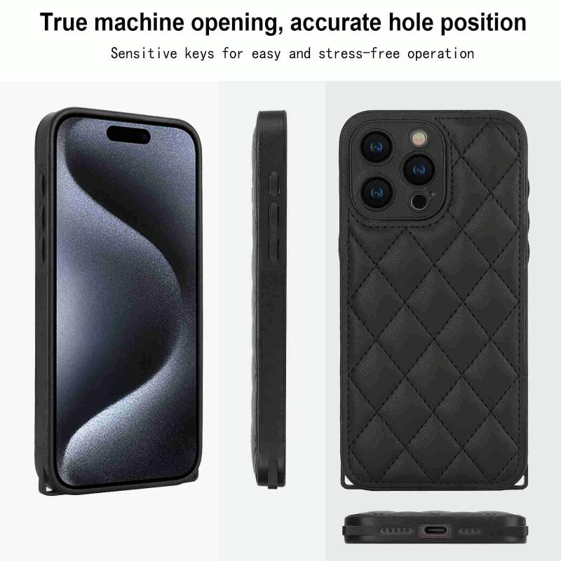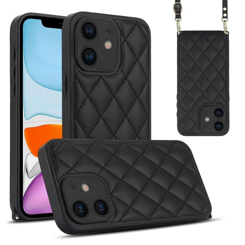 For iPhone 11 Rhombic Texture Phone Case with Dual Lanyard(Black)