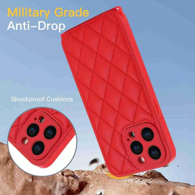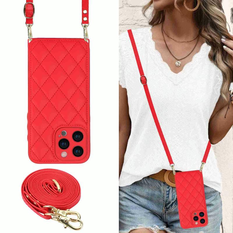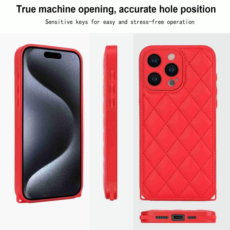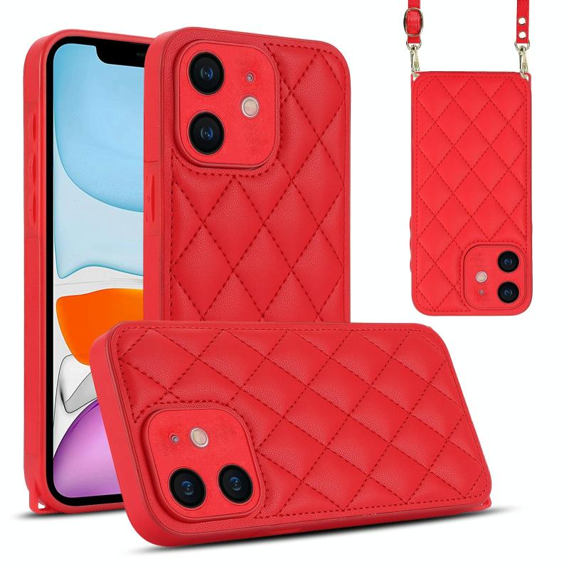 For iPhone 11 Rhombic Texture Phone Case with Dual Lanyard(Red)
