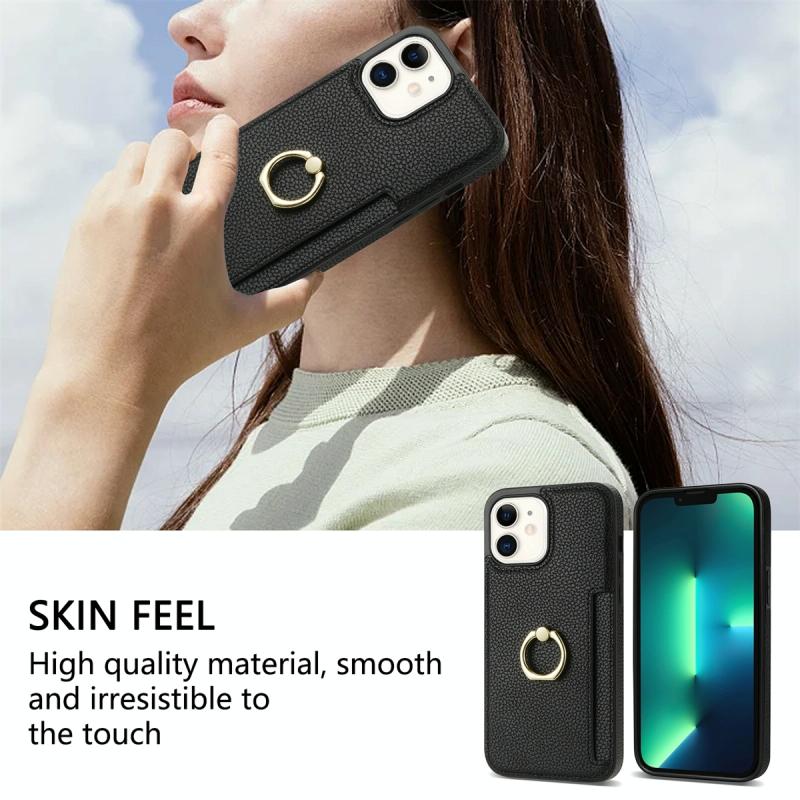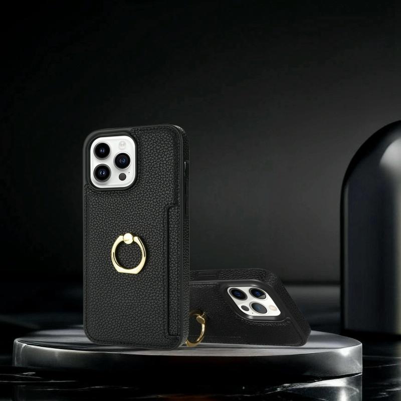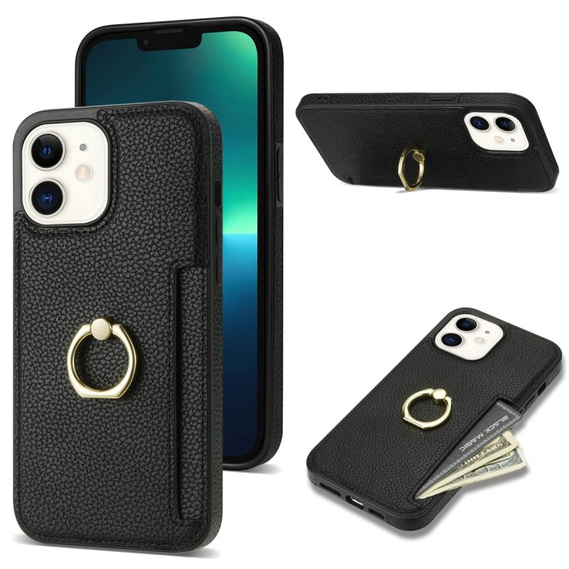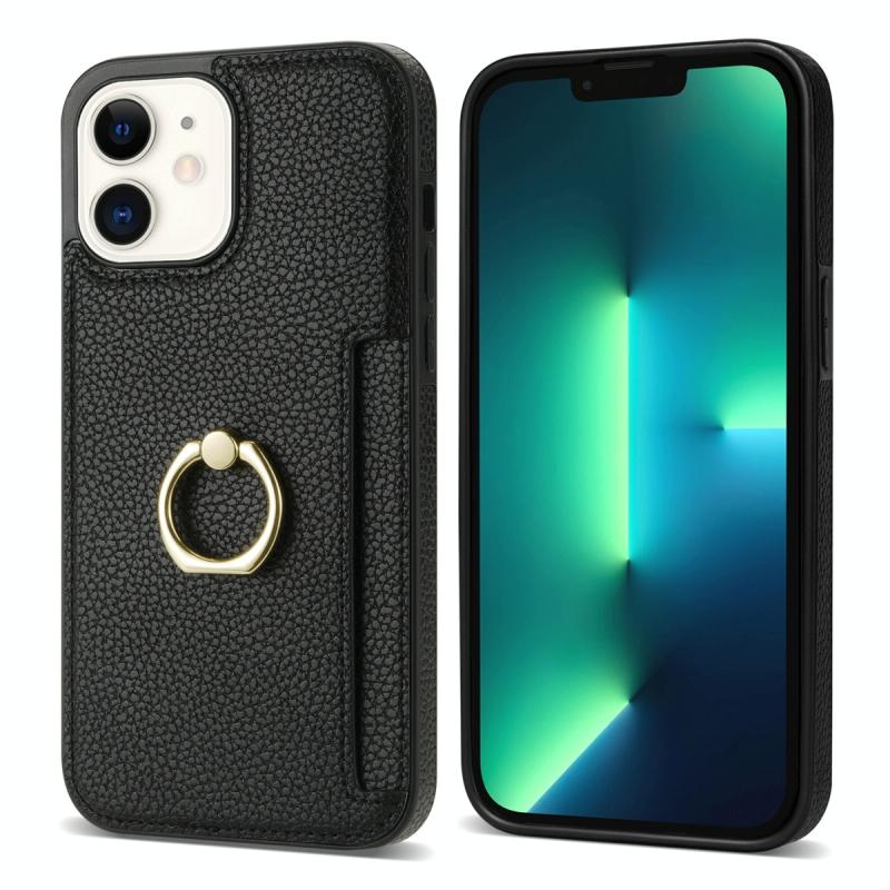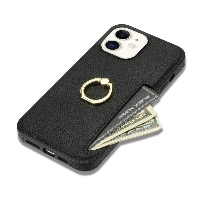 For iPhone 11 Ring Card Litchi Leather Back Phone Case(Black)