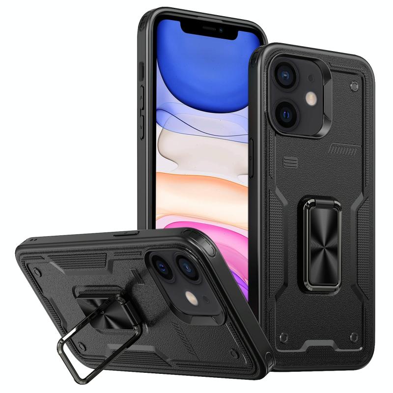 For iPhone 11 Ring Holder PC Hybrid TPU Phone Case(Black)