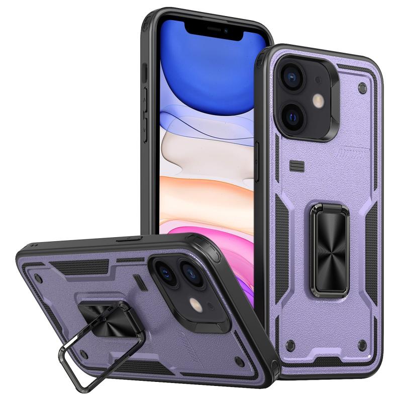 For iPhone 11 Ring Holder PC Hybrid TPU Phone Case(Purple)