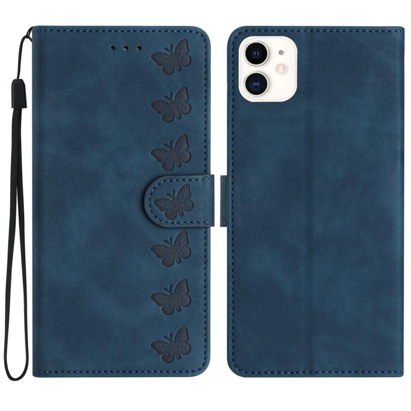 For iPhone 11 Seven Butterflies Embossed Leather Phone Case(Blue)