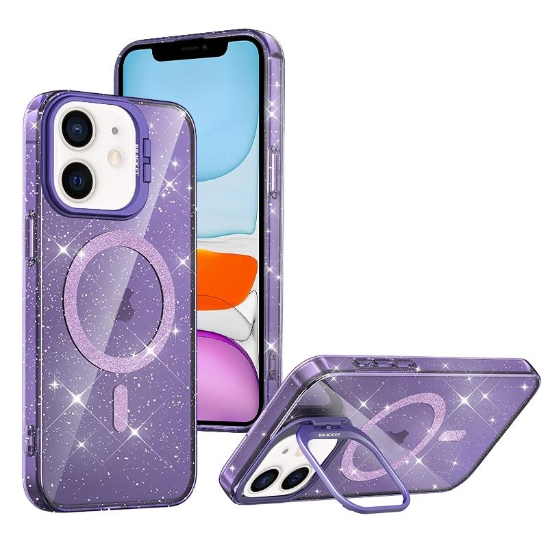For iPhone 11 Shiny Shield MagSafe Lens Holder Phone Case(Purple)