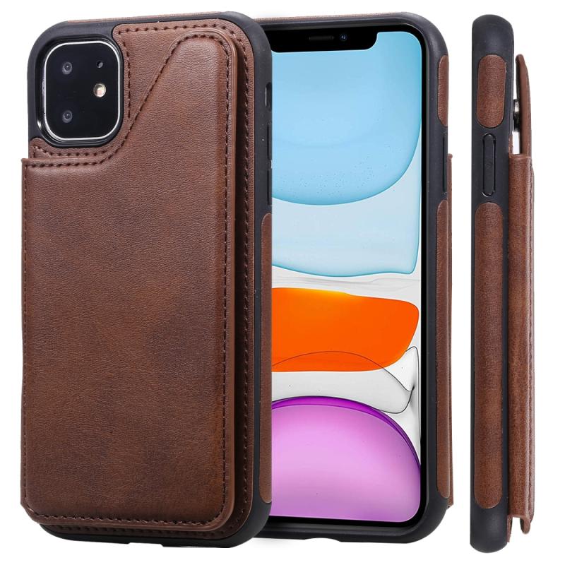 For iPhone 11 Shockproof Calf Texture Protective Case with Holder & Card Slots & Frame(Coffee)