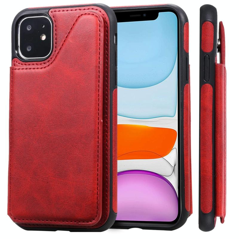 For iPhone 11 Shockproof Calf Texture Protective Case with Holder & Card Slots & Frame(Red)