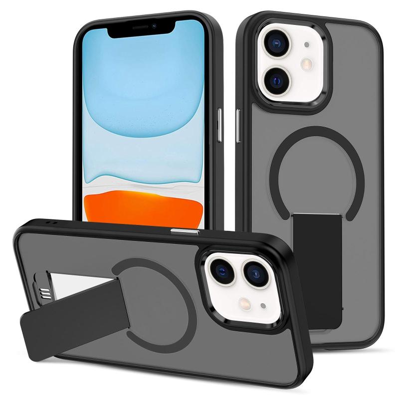 For iPhone 11 Skin Feel Invisible Kickstand MagSafe Phone Case(Black)